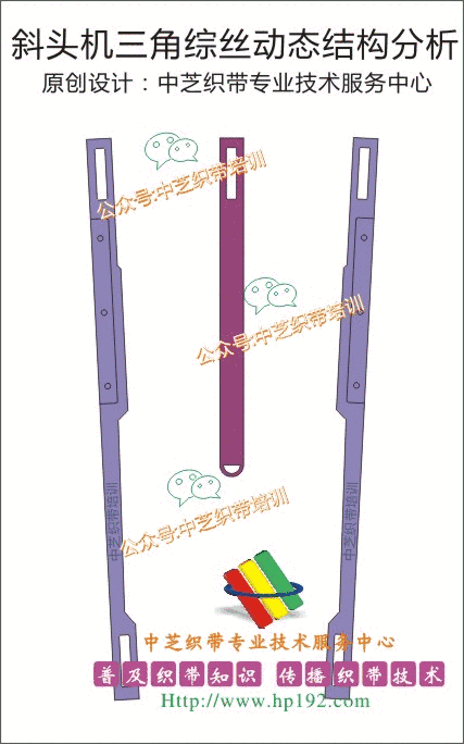 以上介绍的是斜头织带机三角综丝的结构构造,它有区别于平头织带机的三角综丝,关于平头织带机三角综丝的结构构造可参考本公众号在2015年初发表的其它原创文章。另外关于斜头织带机与平头织带的区别,本公众号也于2015年发表过专业文章,可免费查阅。
